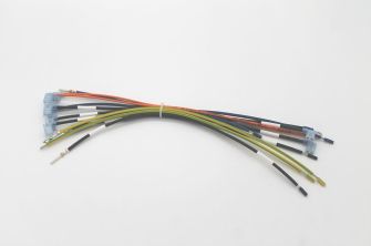Kabelsatz mit Ringkabelschuh, Flachsteckhülsen isoliert 90°, Aderendclipsen und gedrehten Kontakten